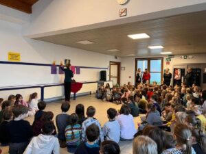 Einmal in der Woche starten alle Klassen gemeinsam bei einem großen Adventbeisammensein in den Vormittag. Es wird von unserer Religionslehrerin Fr. Paller eine Geschichte gelesen, dann wird gemeinsam gesungen und die nächste Kerze am Adventkranz angezunden.